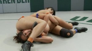 Rilynn Rae battles Wenona in the Ultimate Surrender wrestling ring. These babes get rough as they try to take each other down and violate each other.